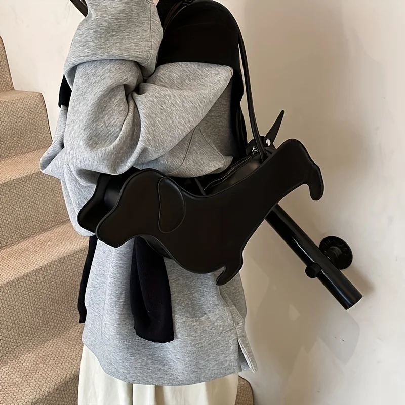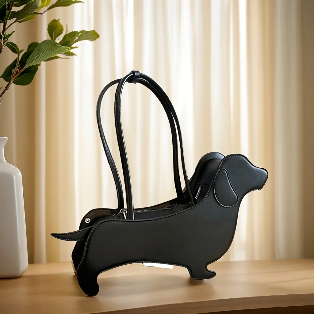 Chic Dachshund Dog Novelty Bag - Trendy Black Shoulder Purse with Zipper Closure, Cute 3D Animal Design