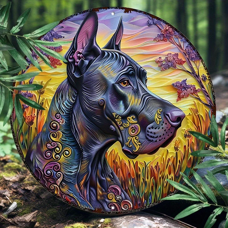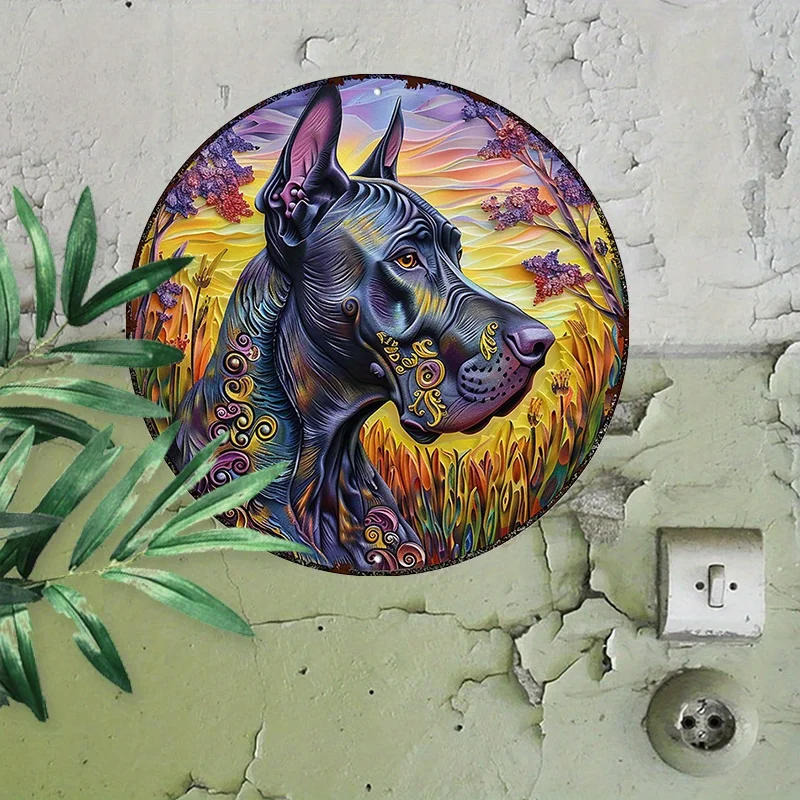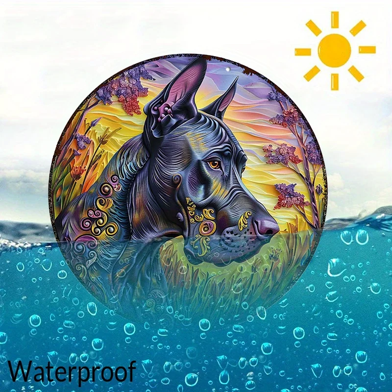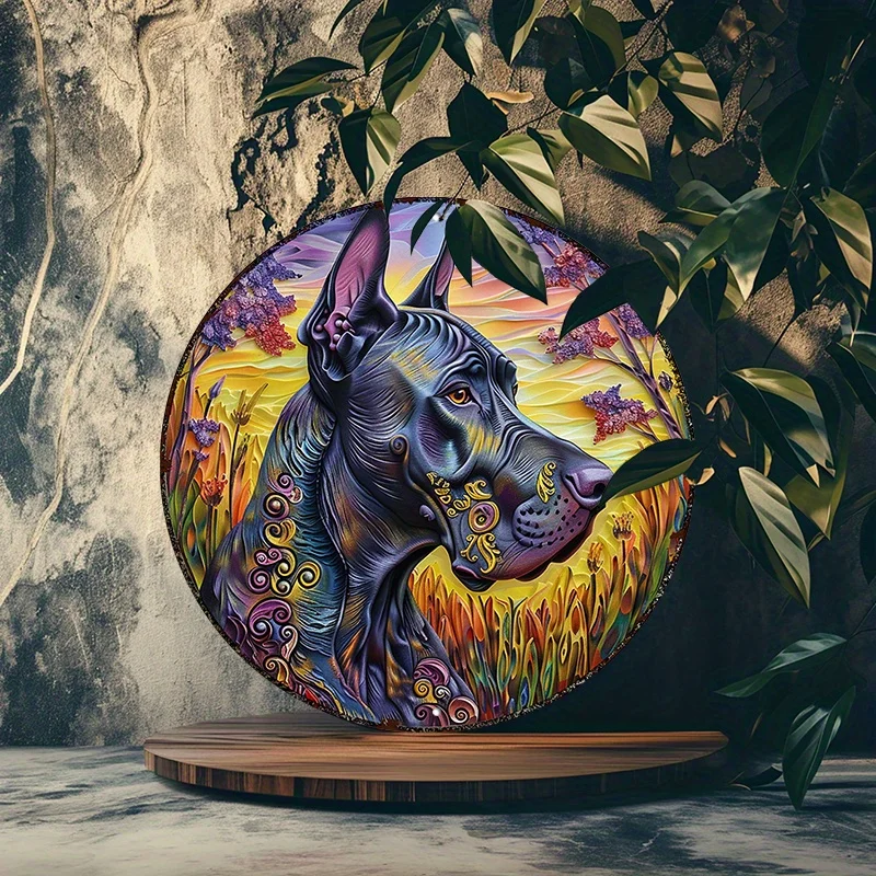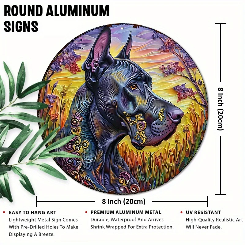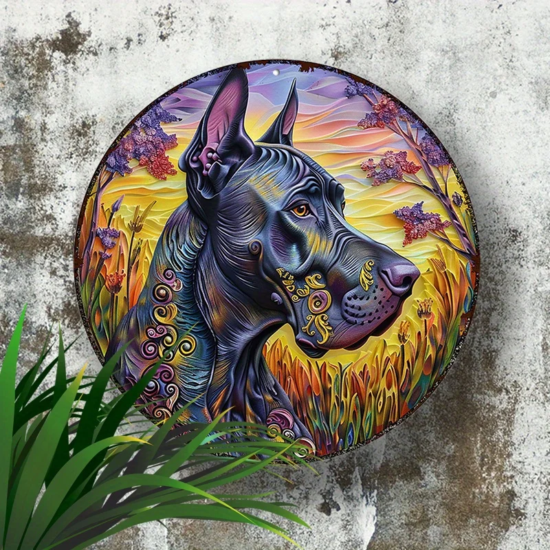 PawHero Wall Art, 8" Round Aluminum Dog Sign, Great Dane Psychedelic Mandala Outdoor Wall Decor, UV & Scratch Resistant